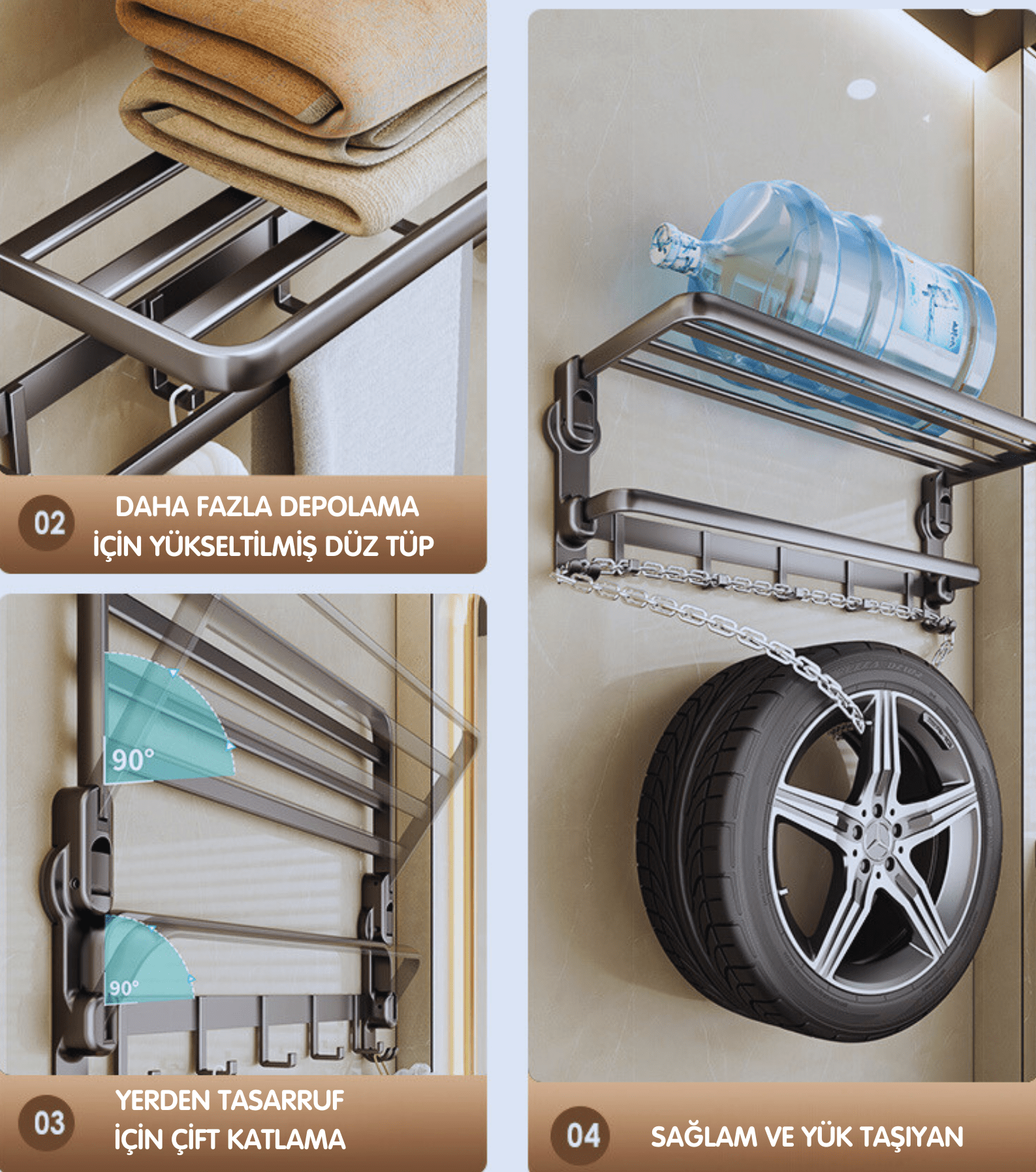 3 Adet BANYO RAF ASKISI -